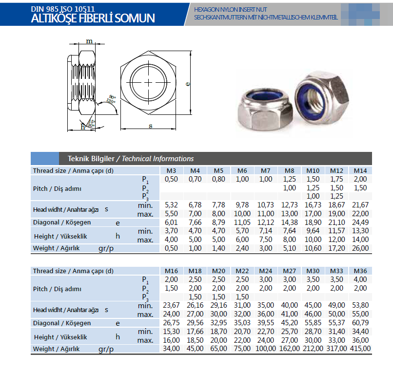 AYAZ M27 Fiberli Somun DIN 985